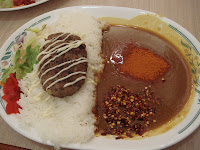 We had Japanese Curry at Kadoya for lunch. It was pretty good, but level 5 out of their 10 levels probably is my limit of hotness. I can't really eat that hot food, I just get heated up for no reason. :S Here's a pic of it below: